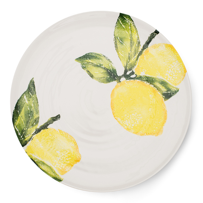 This round serving platter is embellished with lemons which have been applied using simple hand-sponging techniques. The glaze is textural giving the decoration a unique quality. Each piece is handmade in Italy. *Due to the handmade nature of this item, colour and pattern may vary between pieces.
